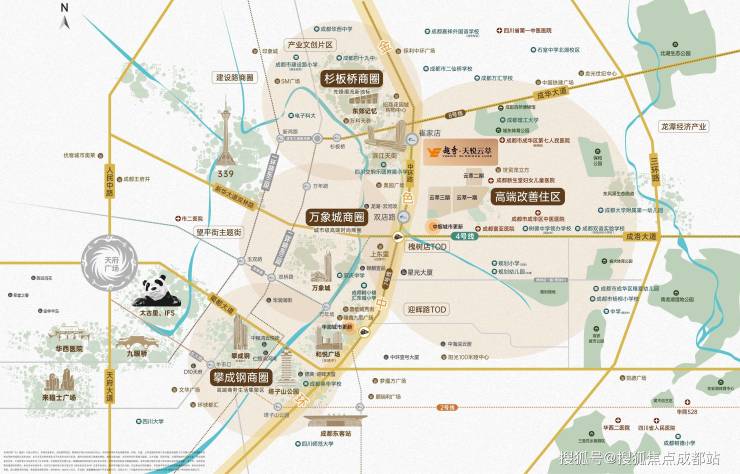 四大商圈环伺:万象城、攀成钢、杉板桥、太古里商圈之核,近享繁华;双TOD交通枢纽:紧邻二环路、中环路、成洛大道、蜀都大道等4大城市主干道;2/4/7/8号线大地铁线路交织;近临槐树店站、迎晖路站、万年场站